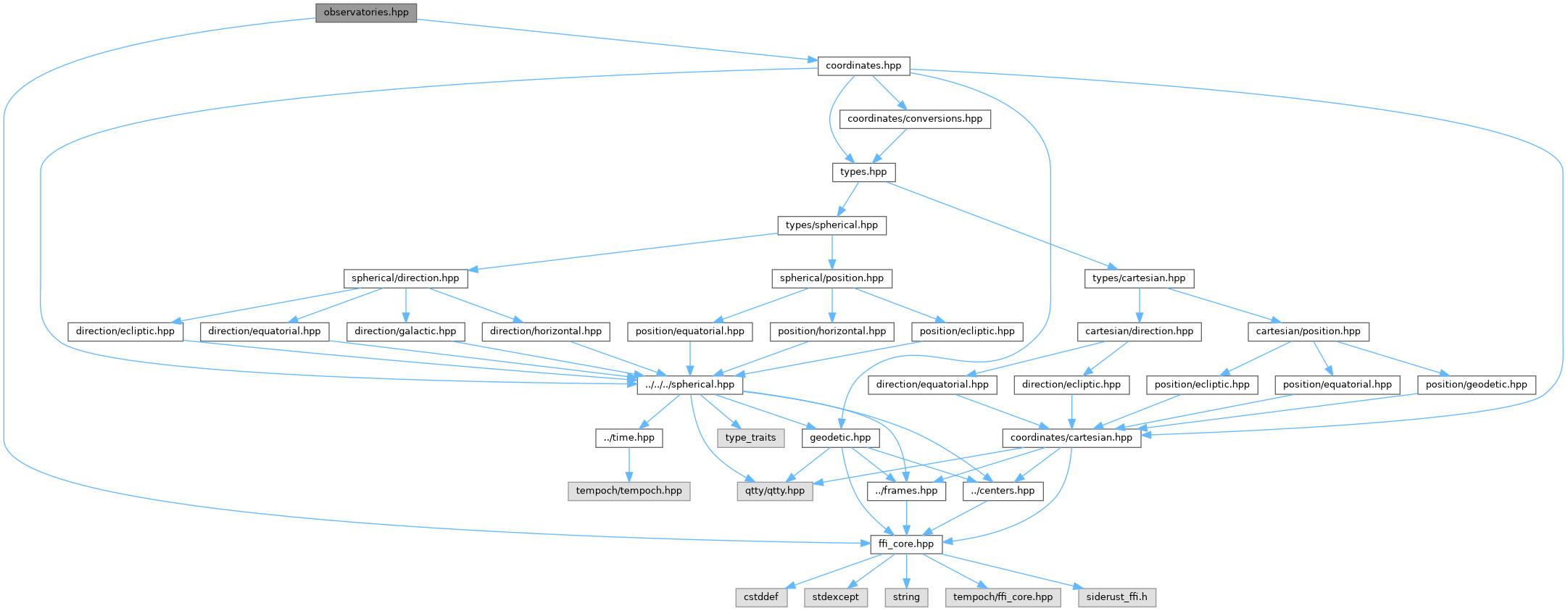 | Geodetic | siderust::geodetic (double lon_deg, double lat_deg, double height_m=0.0) |