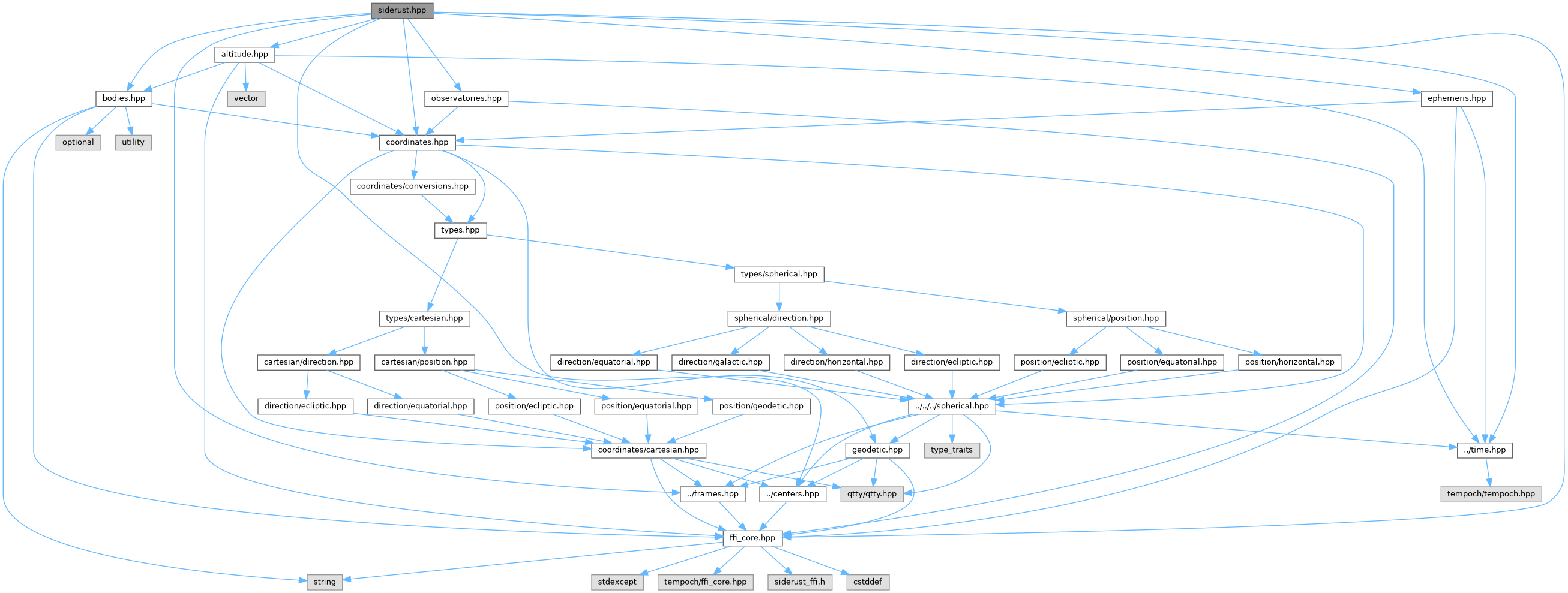 Umbrella header for the siderust C++ wrapper library.